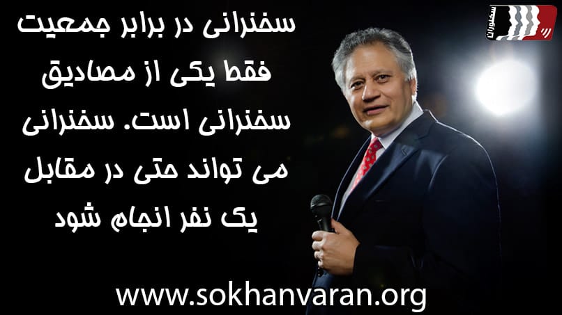 در آموزش سخنرانی می گوییم: سخنرانی یا سخنوری ارائه ی کلام است با نگاه راهبری، چه برای هزاران نفر و چه حتی برای یک نفر. این یعنی چه؟ معمولا ما نگاهمان به سخنرانی این است که یک کسی در مقابل جمعیت کثیری ایراد سخن می کند. خدمت شما عرض کنم که این یکی از مصادیق سخنرانی و سخنوری است ولی همة سخنرانی نیست.