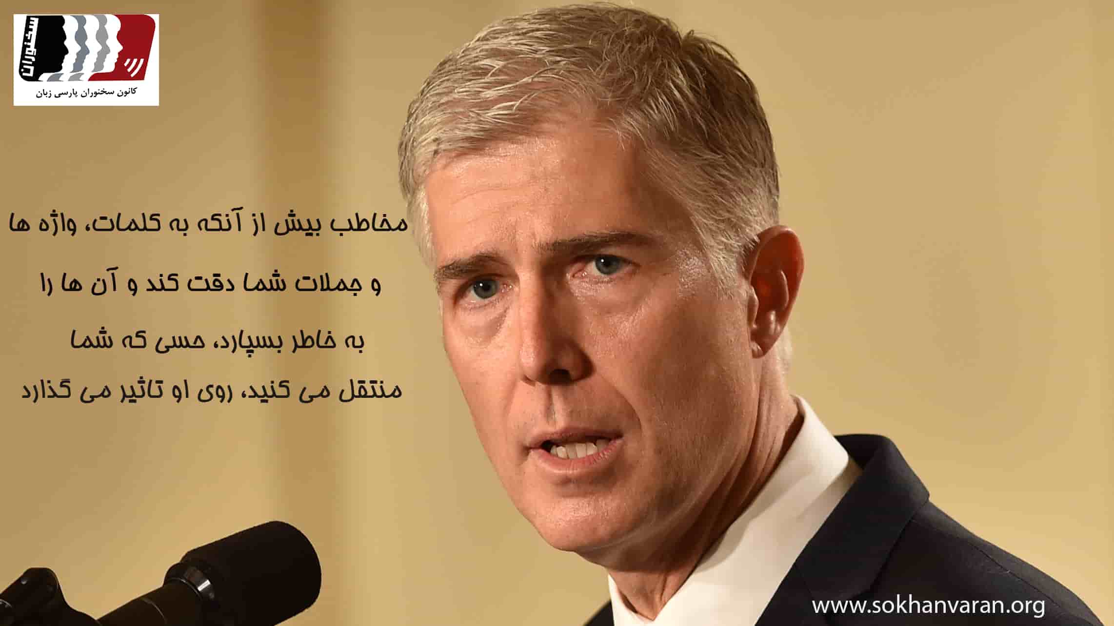 در بسیاری مواقع زمانی که گوینده سخن شروع به صحبت می کند، شما احساس می کنید که او فقط دارد یک سری کلمات را پشت سر هم بیان می کند، گو اینکه فقط وظیفه دارد آن ها را بیان کند، بدون هیچ حسی یا کانال ارتباطی که شما را جذب کند. به خاطر داشته باشید مخاطب بیش از آنکه به کلمات، واژه ها و جملات شما دقت کند و آن ها را به خاطر بسپادد، حسی که شما منتقل می کنید، روی او تاثیر می گذارد.