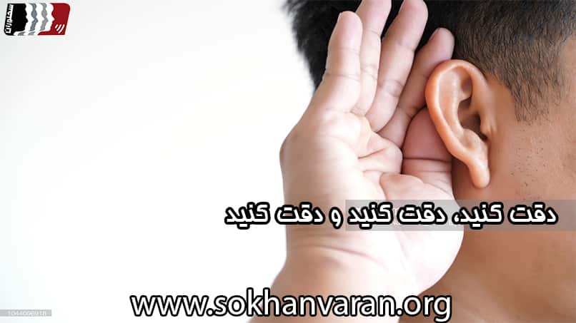 این دقت ها شما را از لحاظ ذهنی آماده می سازد که نسبت به مقوله سخن گفتن دقیق شوید و تازه اینجاست که گوینده دقیق بر استفاده از واژگان و کلمات و جملات و عبارات، دقیق عمل می کند. مثلا دیگر نمی توان خیلی بی تفاوت و غیر حساس از واژه درد بجای رنج، تماشا کردن بجای دیدن، خنده بجای تبسم، کینه بجای نفرت، عادت بجای تکرار، خسته بجای ناتوان و… استفاده نمایید.