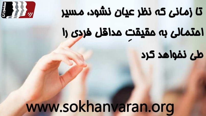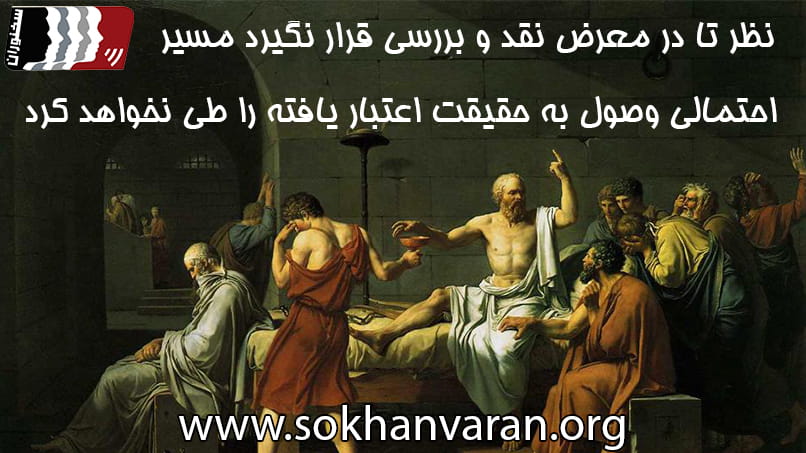 بايد نظر را ارائه نمود، چرا كه تا در معرض نقد و بررسي قرار نگيرد به هيچ وجه مسير احتمالي وصول به حقيقت اعتبار يافته را طي نمي كند. بنابراین بدون اینکه نظر در معرض نقد و بررسی قرار بگیرد نمی توان صرفا با تصورات ابتدایی و سطحی به تصديقات پيش برنده دست يافت. لزوما ارائه نظر نبايد به مثابه نتيجه شخص از يك اتفاق و پديده به خصوص باشد كه بايد آن نظر را در مقام بحث به نظاره بنشينيم تا معتبر شود. اما این به آن معنا نيست که در فضای بحث ما روی نظر خود ابرام و پافشاری نکنیم، بلكه حتي بايد به طريقي در جهت تقويت مباحثه و غوررسي و تعمق قدرتمند، از آن دفاع نمود و به اثبات آن پرداخت. آنچه که مذموم است و مدنظر ما نیست دفاع كوركورانه و متعصبانه از نظر است که خود ناشی از کوته بینی و عدم تفکر است.